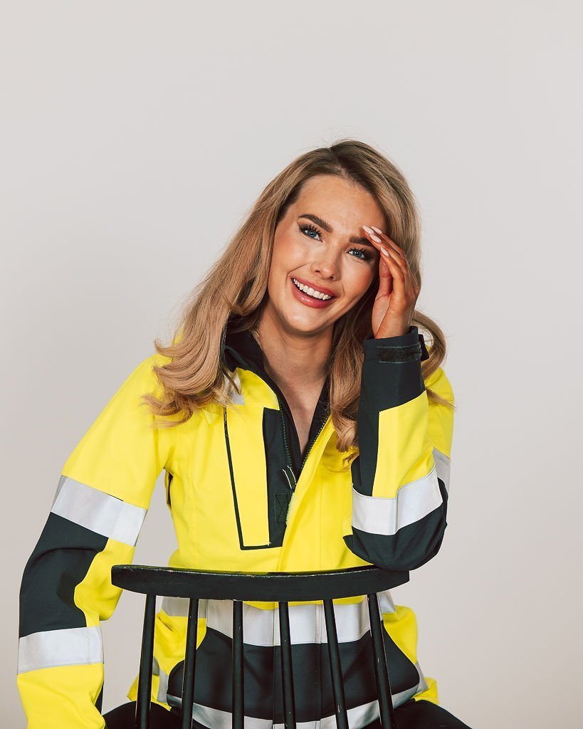Suomi kaipaa tässä vastakkainasettelujen ajassa tarinoita, joissa erilaiset maailmat kohtaavat. Emmi Suuronen yhdistää kaksi muka erilaista maailmaa yhteen luonnollisesti, rikkoen samalla raja-aitoja ja lasikattoja. Hän on kuin kotonaan työmaaparkissa pahvikahvi kädessä, mutta seuraavassa hetkessä turvajalkineet ovat jo vaihtuneet korkokenkiin valokuvausstudion kirkkaissa valoissa.